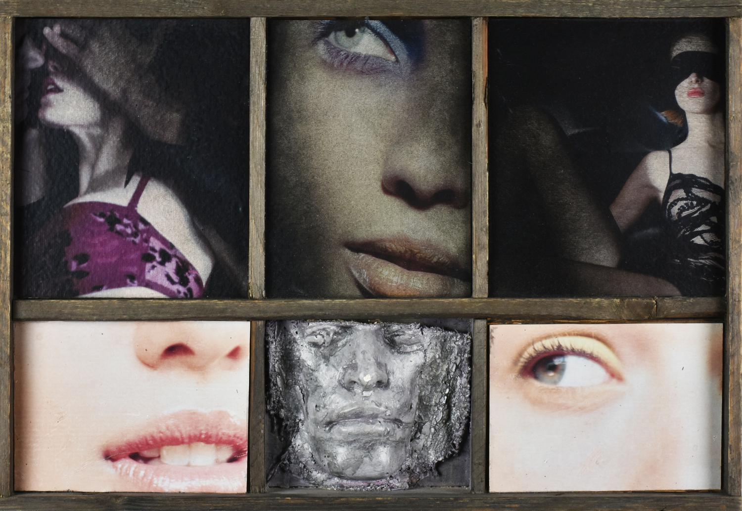 Gastone Cecconello VOLTI fotografie e scultura in gesso su supporto in legno,...