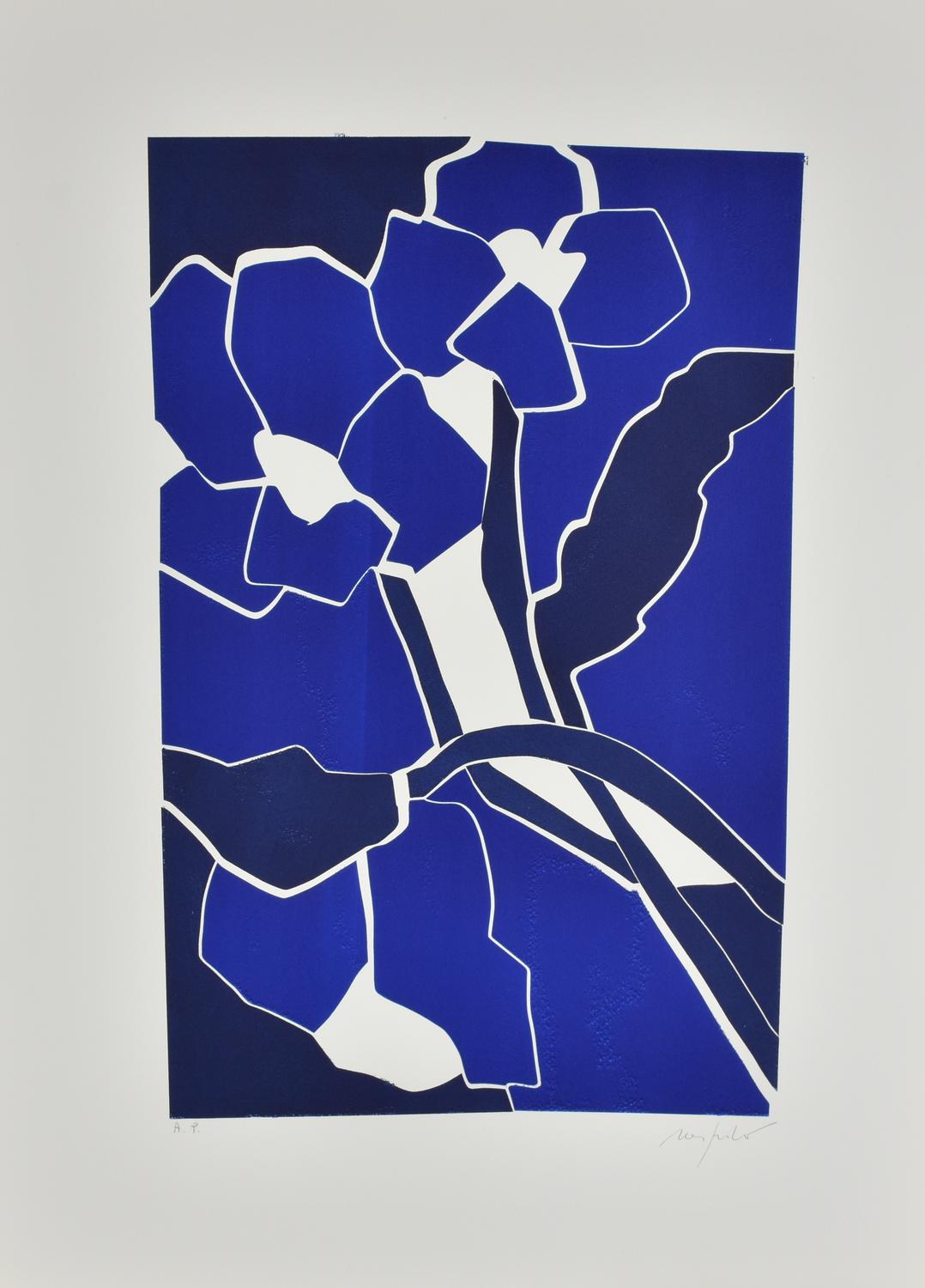 Ugo Nespolo FIORI BLU incisione su carta, battuta cm 51x32,5, su foglio cm...