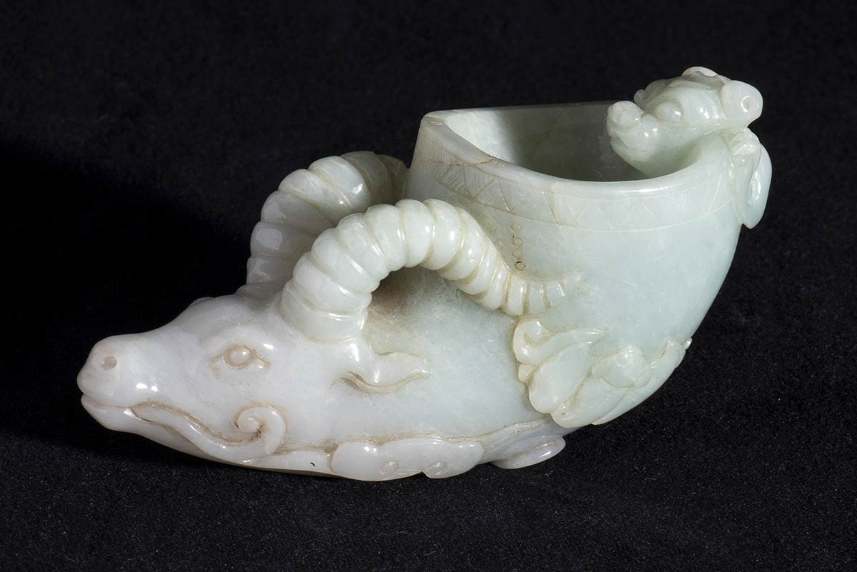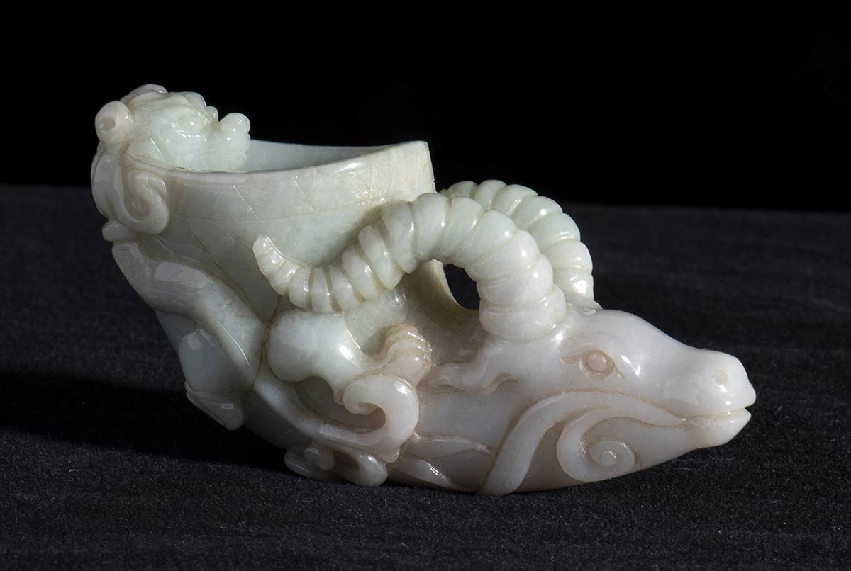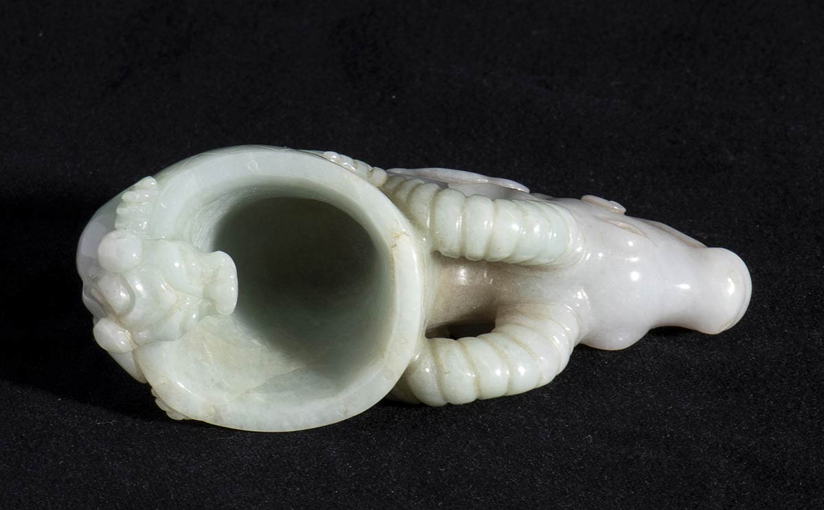 COPPETTA ZOOMORFA IN GIADEITE GRIGIO-VERDE E LAVANDA