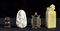 Il lotto si compone di un sigillo con finale a leone buddhista in giada gialla, di una piccola scultura in pietra marrone con un animale accucciato, di un pendente in giada con un bodhisattva in rilievo e di un pendente in giada verde spinacio con montatura in metallo dorato ornato con iscrizione a tre caratteri.