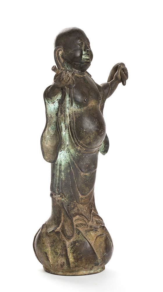 SCULTURA CON BUDAI IN BRONZO<br>Cina, XIX-XX secolo