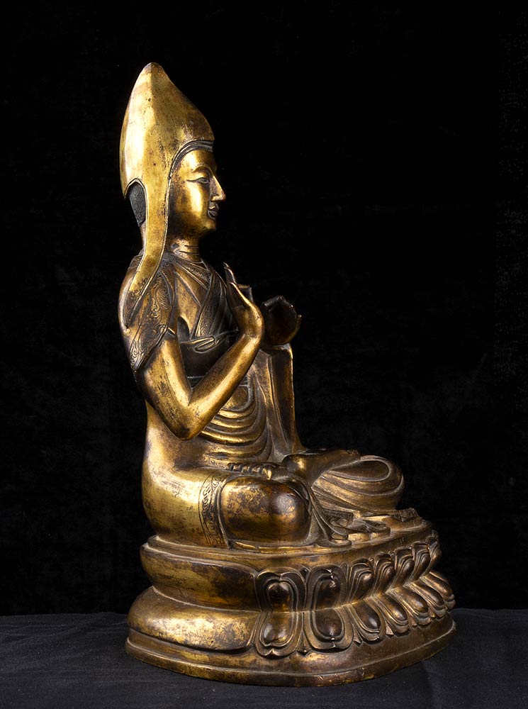GRANDE SCULTURA IN BRONZO CON TSONGKHAPA<br>Tibet, XIX secolo