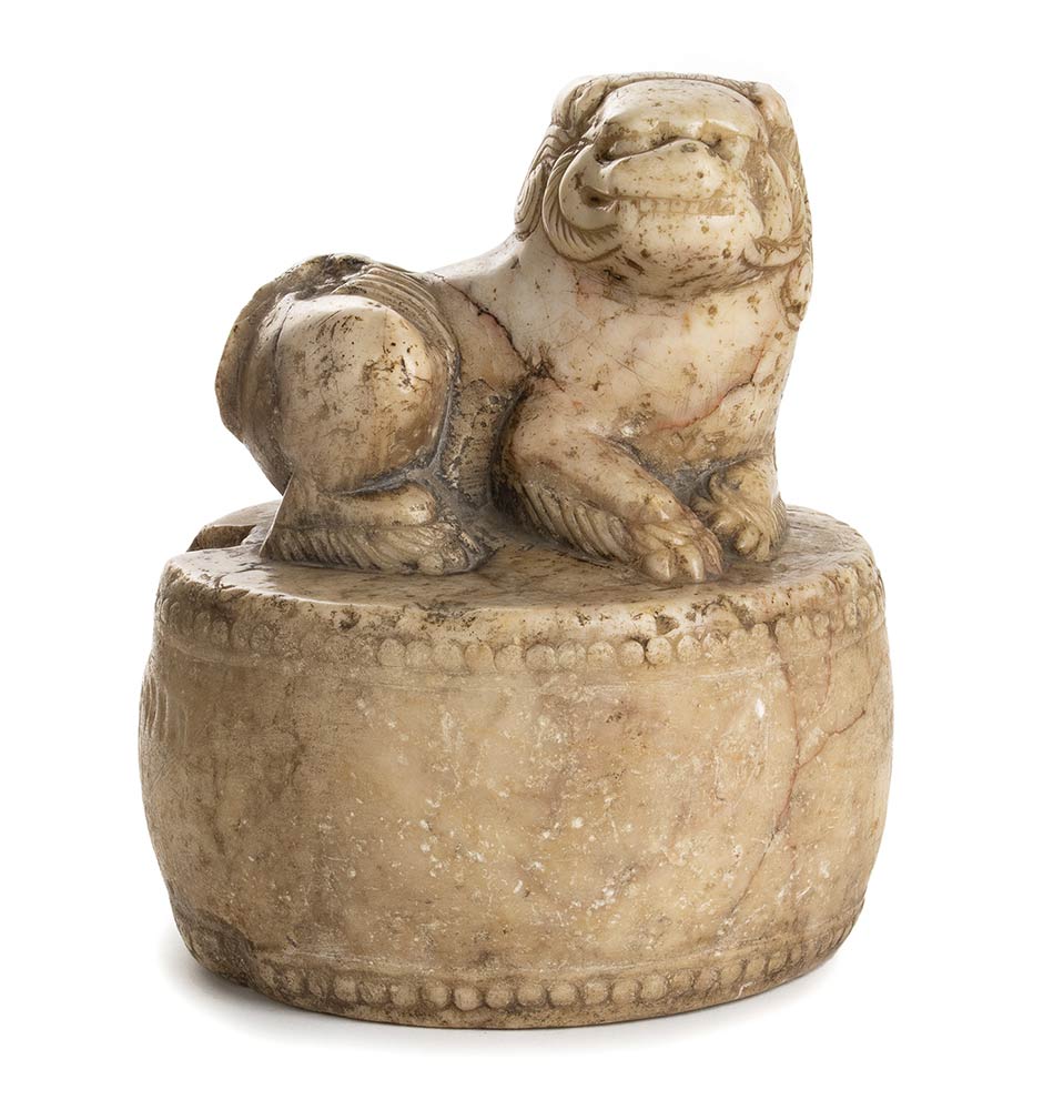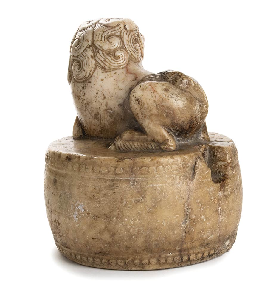 Lot 112 | SCULTURA DI LEONE BUDDHISTA SU TAMBURO CIRCOLARE IN MARMO<br>Cina, inizio dinastia Ming