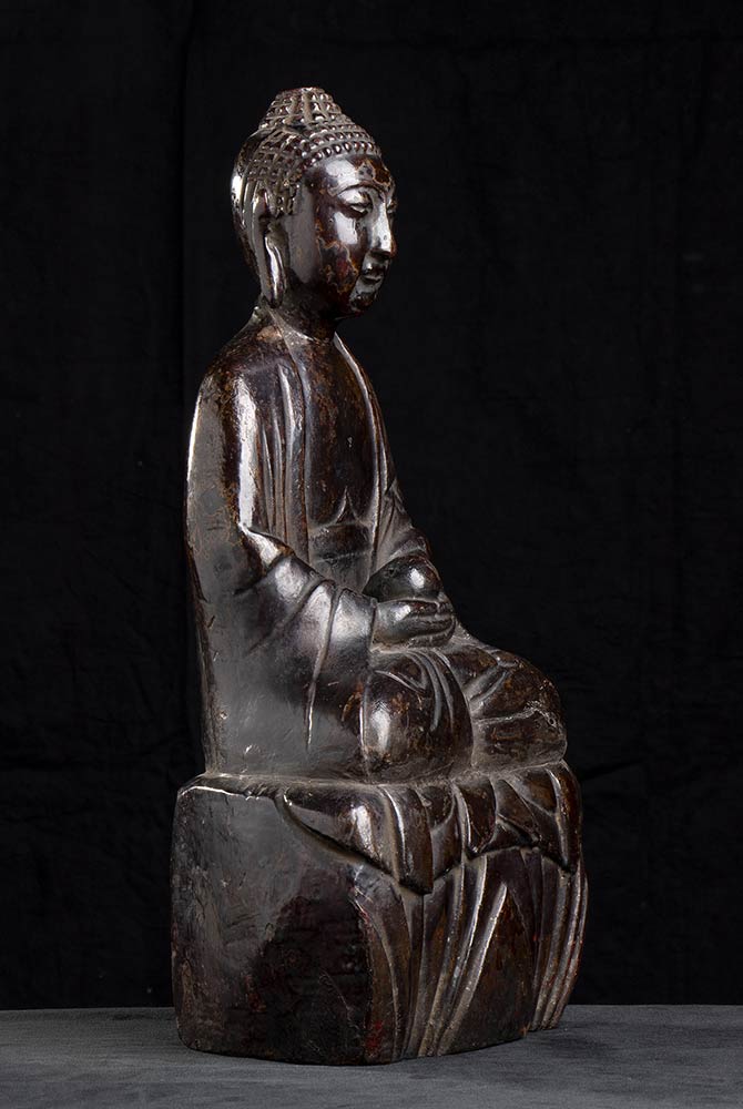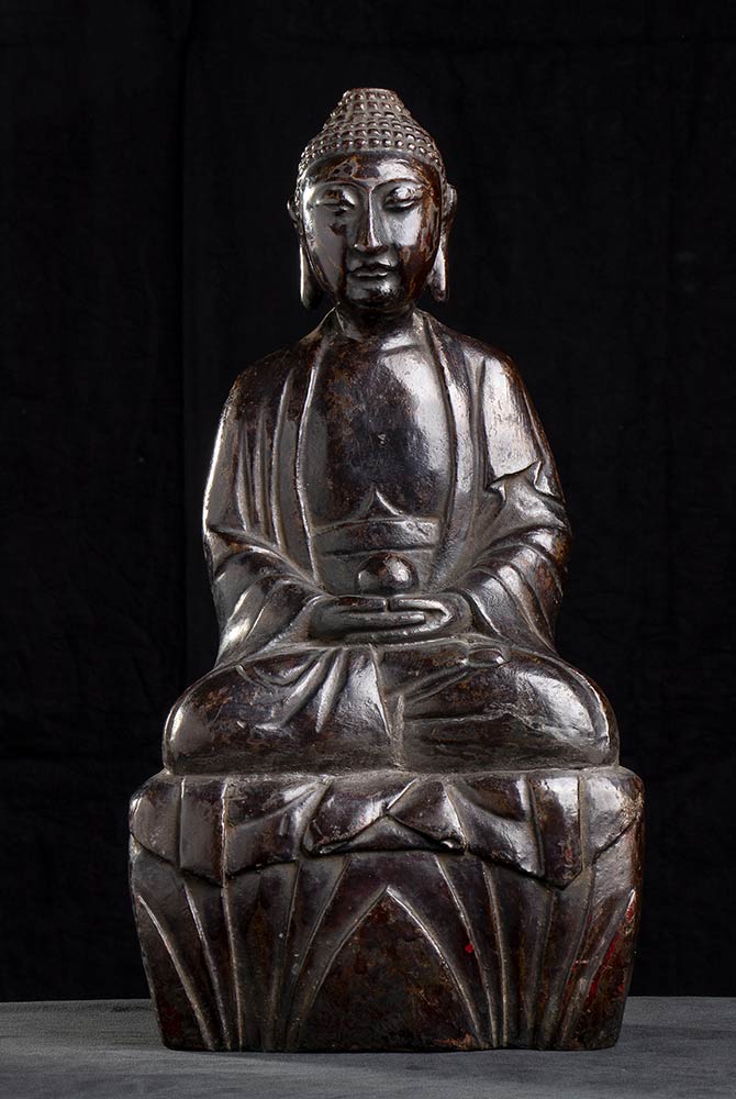SCULTURA DI BUDDHA IN LEGNO<br>Cina, dinastia Qing
