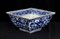 CIOTOLA QUADRATA IN PORCELLANA 'BIANCO E BLU' CON DECORO DI DRAGHI<br>Cina, marchio del periodo Jiajing