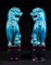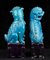 I due animali rivestiti di invetriatura turchese, la base di color melanzana