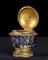 Concepito in origine come calamaio (manca il contenitore interno in metallo per l'inchiostro), l'oggetto si compone di ciotola a sezione circolare con parete modellata a sbalzi decorata sull'esterno in policromia con motivi floreali e geometrici, sulla quale si sistema tra piede e coperchio una ricca montatura in bronzo con finale a fiore, piccolo foro al centro della base della ciotola, “8138” graffito all'interno del coperchio in bronzo.