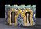 Modellato come edificio, con due porte cuspidate sul davanti e sul retro, i due contenitori cilindrici per l'inchiostro appaiono come colonne, la decorazione floreale dipinta a smalti giallo verde, nero e blu.
