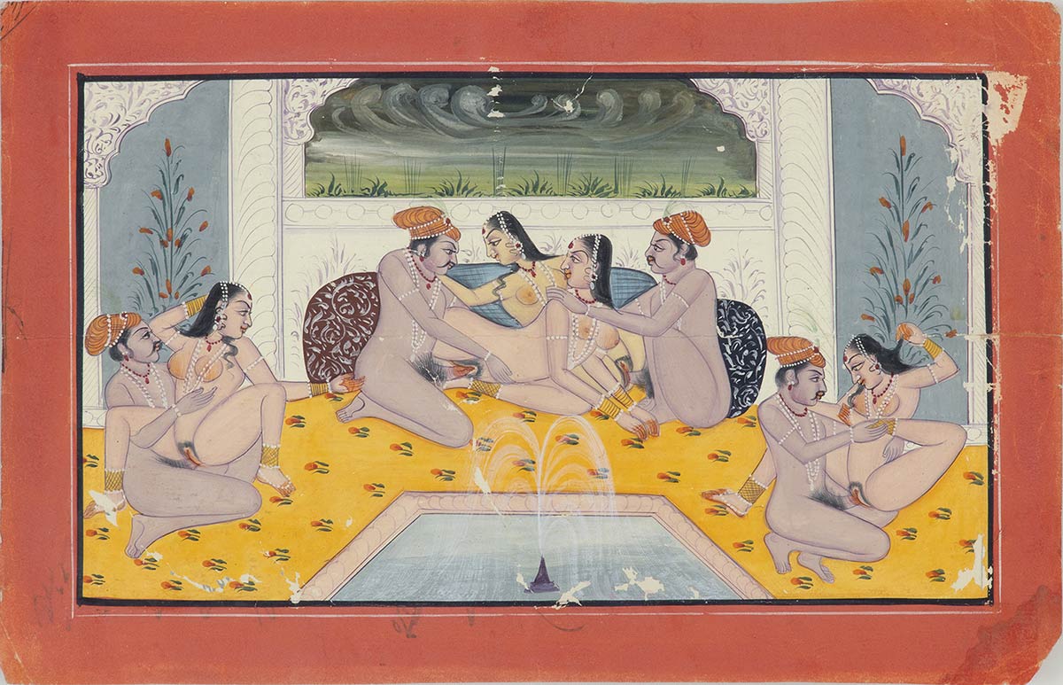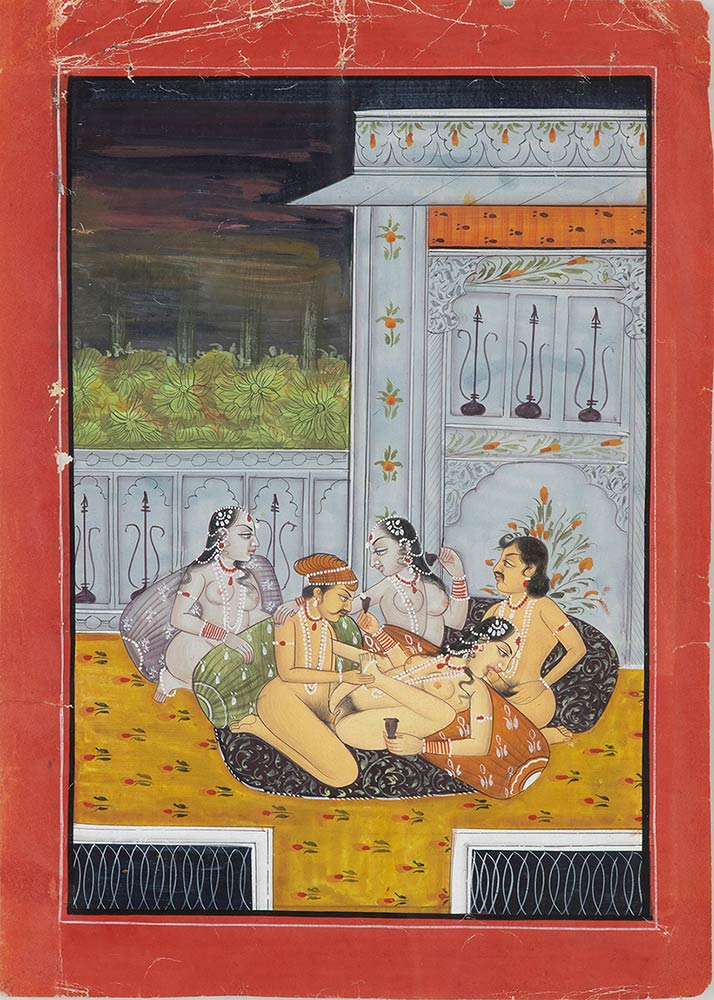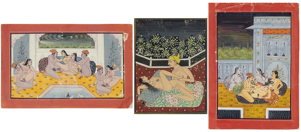TRE MINIATURE DI TEMA EROTICO<br>India, XIX secolo