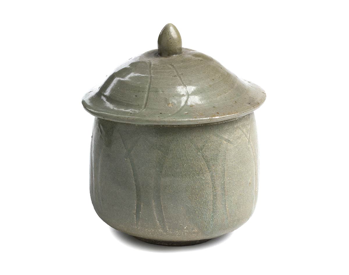 CONTENITORE CON COPERCHIO IN CERAMICA CON INVETRIATURA CÉLADON<br>Corea, dinastia Goryeo