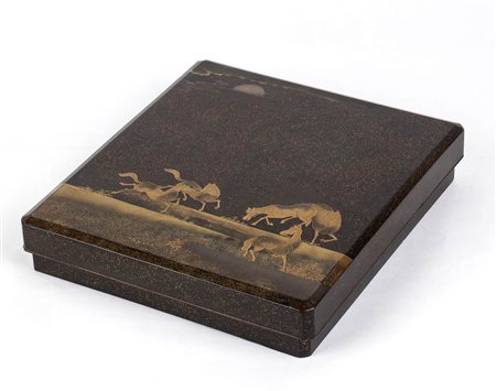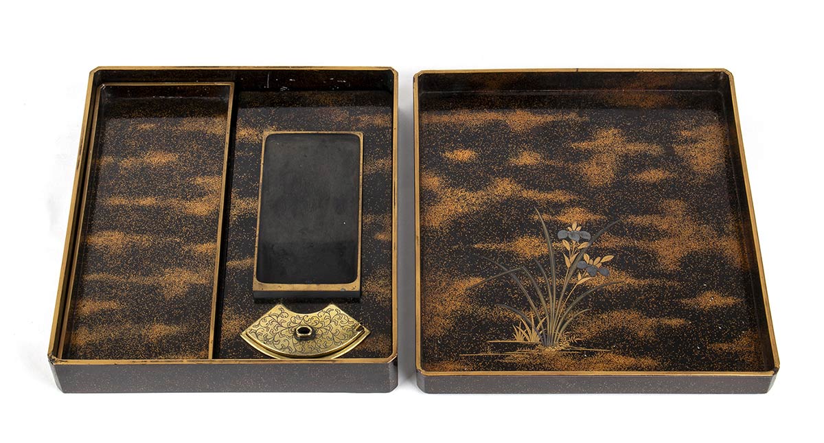 SCATOLA DA SCRITTURA IN LEGNO LACCATO E DORATO, SUZURIBAKO<br>Giappone, periodo Edo, XIX secolo