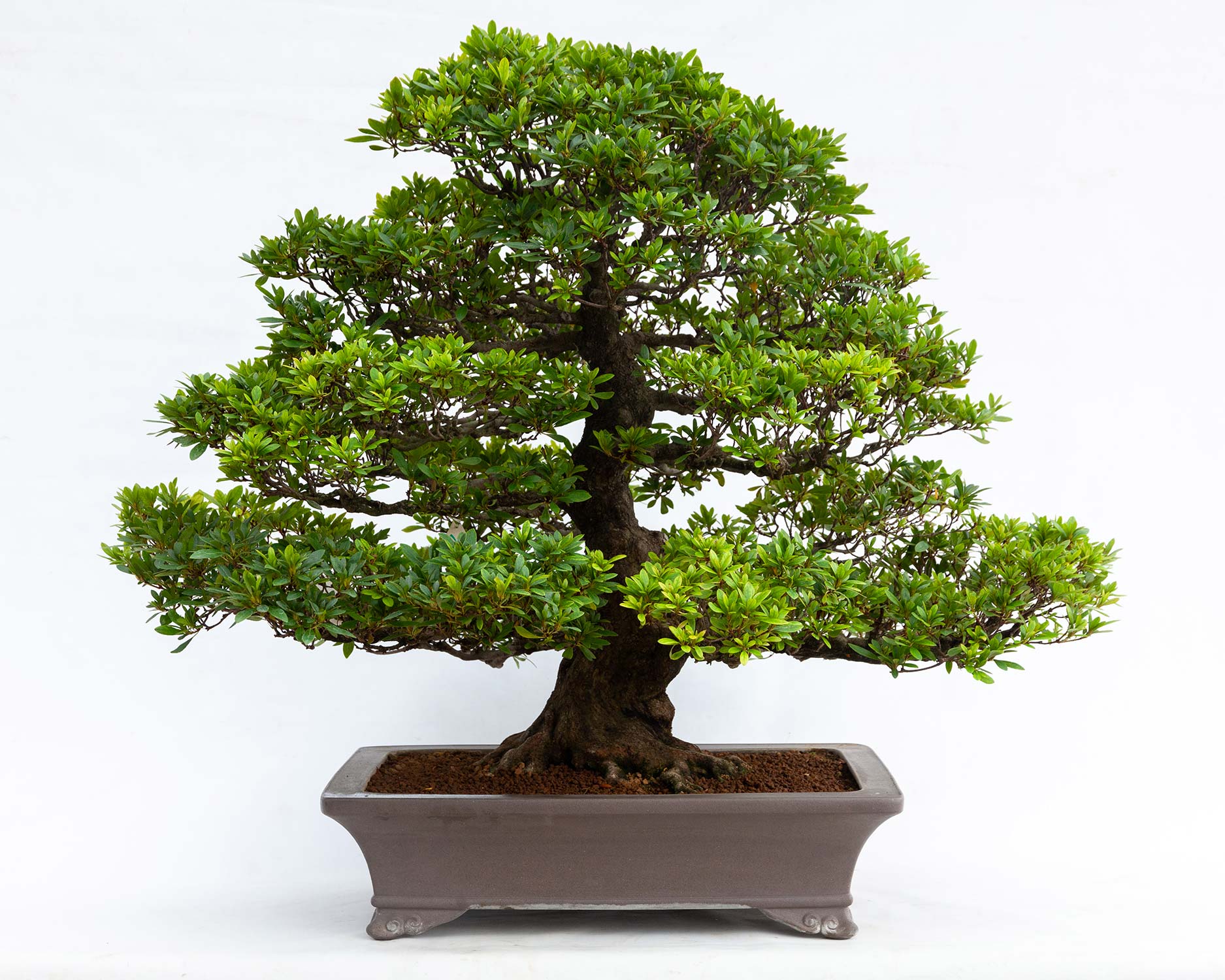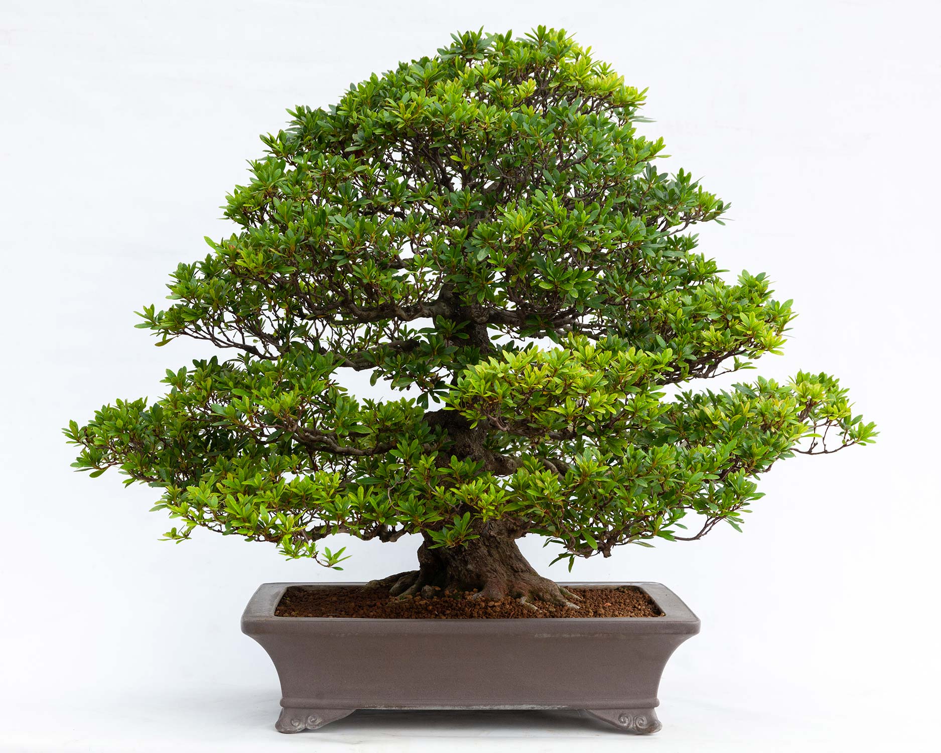 Magnifico esemplare classico di azalea la cui forma permette di apprezzare in pieno la sua fioritura di colore. Pianta proveniente dalla zona di Kanuma, tradizionalmente votata all’apice della produzione di questa specie. Età stimata 50 anni.