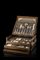 Servizio di posate in argento composto da: dodici forchette, coltelli e cucchiai, dodici forchette, coltelli e cucchiaini da dolce, dodici cucchiaini da caffè e undici posate a servire. Titolo 800. Argentiere Cesa (g 4700) In custodia in legno con prese e fasce ebanizzate (difetti)