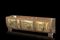 Antico cassone nuziale con fronte tripartito con scene di corte entro fregi in pastiglia dorata, fianchi decorati a motivi vegetali (cm 140x42x40) (restauri e mancanze)