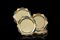 Gruppo di otto sottopiatti in vermeille con bordi polilobati cesellati a volute intervallate da riserve in lapislazzulo. Titolo 800. Milano, seconda metà secolo XX (d. cm 31,5) (g 7700 circa) (difetti)