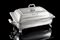 Legumiera con coperchio in argento. Corpo di forma rettangolare con superficie