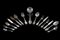 Servizio di posate in argento con manico sagomato cesellato a palmette, compost