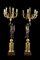 Coppia di candelabri a quattro luci in bronzo dorato e cesellato a motivi veget
