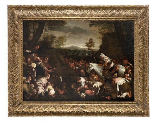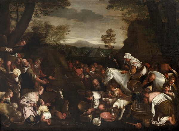 Scuola del secolo XVII, da Jacopo Bassano Mosè fa scaturire l'acqua dalla rocc