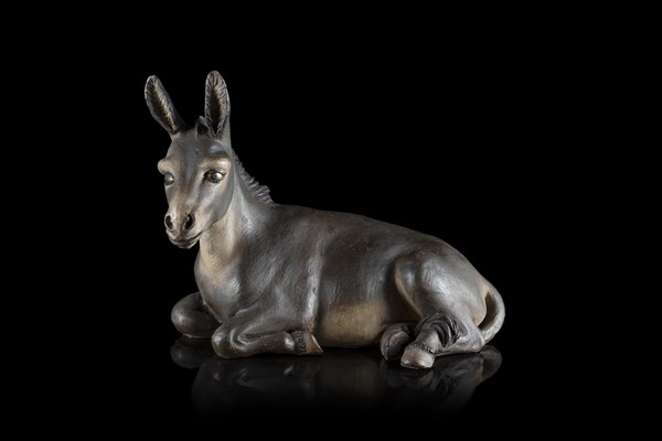 Lot 146 | Ignoto, secolo XIX "Asino accosciato" figura da presepe in terracotta policroma