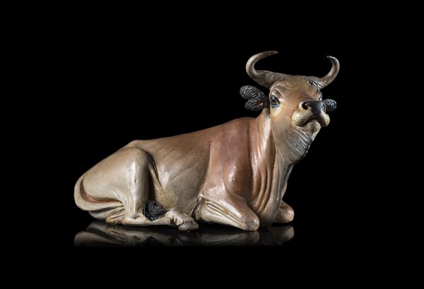 Ignoto, secolo XVIII/XIX "Toro" figura da presepe in terracotta policroma con occhi in cristallo. Il toro rientrava nel gruppo di animali presenti nella vicenda dell'annuncio ai pastori o in scene rustiche, per la resa plastica si attribuisce a un collaboratore di Saverio Vassallo, attivo tra la fine del secolo XVIII e il primo ventennio del secolo successivo (cm 20x11) (difetti)