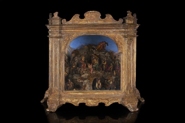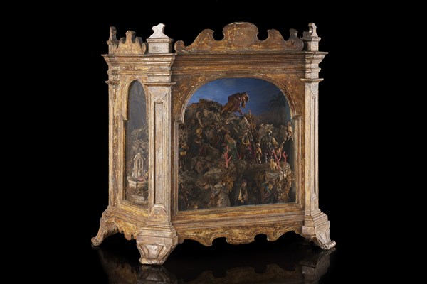 Lot 153 | Presepe in terracotta, sughero e coralli, decorato in policromia, contenuto in