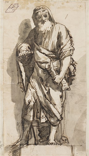 Pen and brown ink, grey washed and traces in black chalk on paper, 190x95 mm.