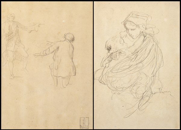 Lotto composto da due disegni: Artista del secolo XVIII Studi di due figure vi