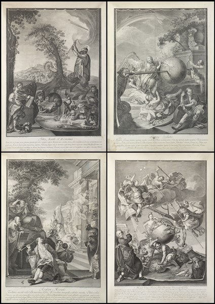 Quattro incisioni ad acquaforte e bulino, cm 70x48 (all'impronta)