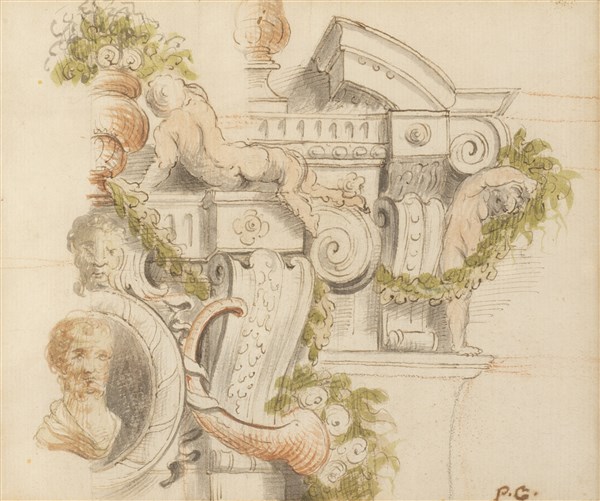 Penna e inchiostro bruno, sanguigna e acquerelli su carta, mm 120x145 circa