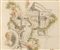 Pen and brown ink, red chalk and watercolors on paper, 120x145 mm. circa