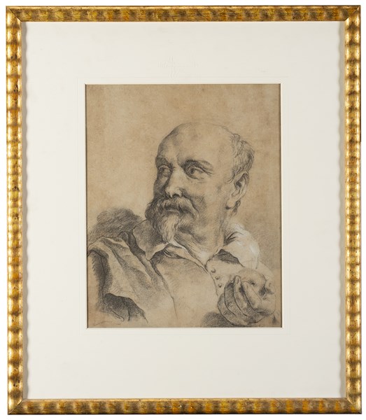 Domenico Fedeli Ritratto di uomo barbuto con in mano una mela Carboncino e rialz