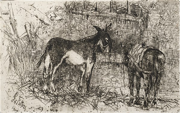 Signed and dated on plate at lower left: "Gio Fattori / 1907"