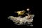 Romolo Grassi. Gruppo in quarzo e pirite sormontato da volatile in smalti con z