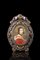 Cornice a cavalletto in argento e vermeille decorata a volute smaltate in polic