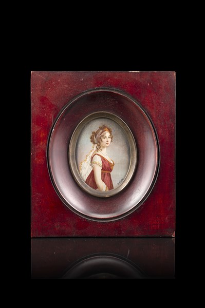 Da Stieler "Ritratto di Luise Konigin in Charlottenbur" miniatura ovale su avorio (cm 7x5,5) In cornice (difetti e restauri)