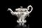 Teiera in argento con corpo globulare decorato a motivi floreali, ansa sagomata