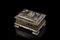 Scatola portacucito in legno laccato e dorato decorata sul coperchio a intarsi