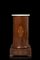 Comodino a colonna lastronato in mogano, anta filettata e intarsiata a motivi f
