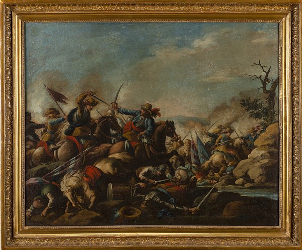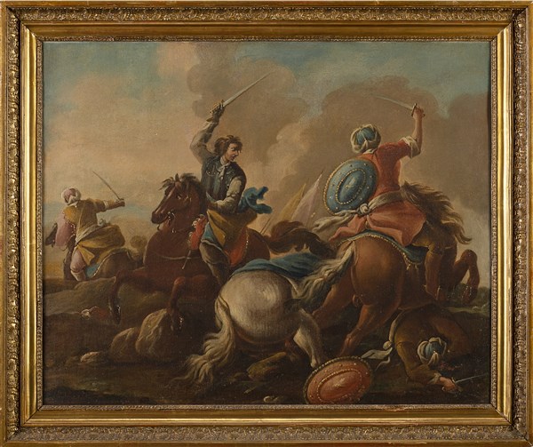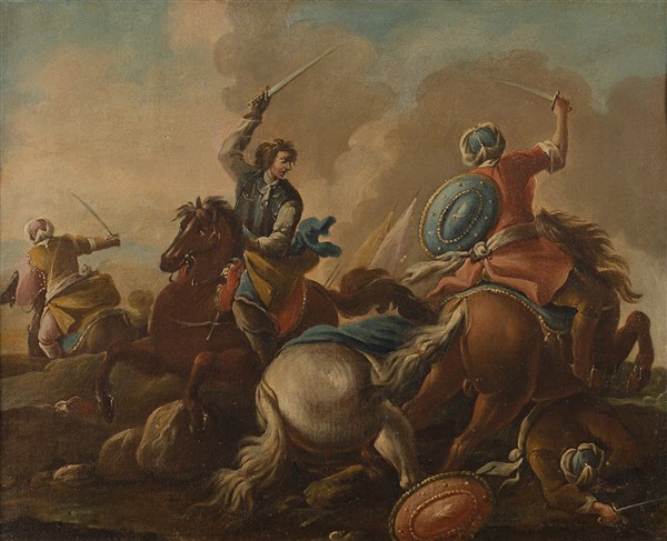 Scuola della fine del secolo XVIII - inizio XIX Scene di battaglia Coppia di d