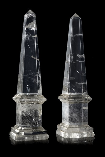 Coppia di elementi decorativi in cristallo di Rocca in forma di obelischi su ba