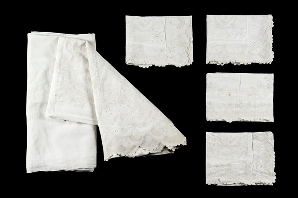 Lot 355 | Parure da letto composto da lenzuolo in bisso di cotone ricamato in cotone a pu