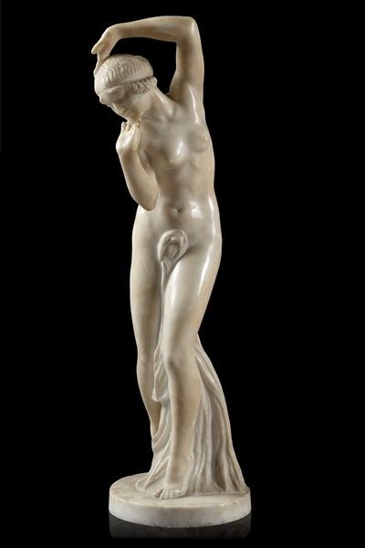 Ignoto carrarese, inizio secolo XX "Danzatrice con mani al volto" scultura in alabastro (h. cm 73)