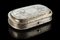 Scatola in argento inciso e zigrinato, coperchio in madreperla decorato a motiv