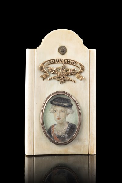 A 19th-century French ivory carnet de bal, with oval miniature (cm 8,5x4) (minor defects)