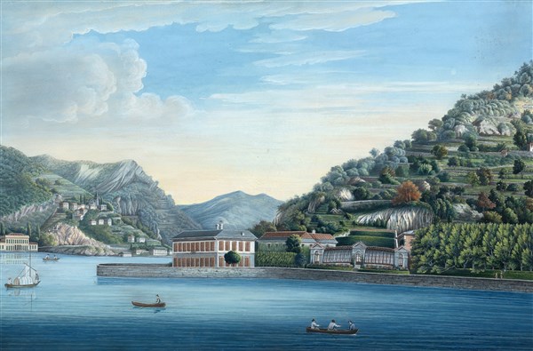 Scuola del secolo XIX "Blevio Lago Di Como" gouache su carta (cm 31x50) In corn
