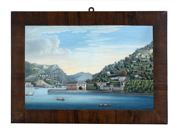 School of the 19th-century "Blevio Como Lake" gouache on paper (cm 31x50) Framed
