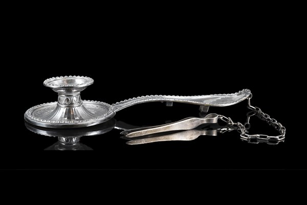 A silver candlestick. Papal State, 19th century (l. cm 26) (g 220)