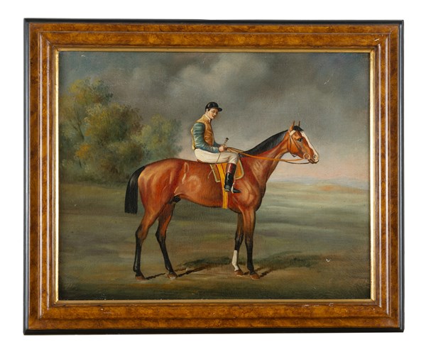 Unknown artist "Horses with jockeys" a pair of oil on canvas (cm 40x50) Framed (defects)