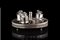 Set da scrivania in argento con prese a tutto tondo a fiori e foglie composto da tre vaschette con coperchi, contenitore, bugia e vassoietto con ringhiera traforata. Veneto, secolo XIX (g lordi 1300) (difetti)